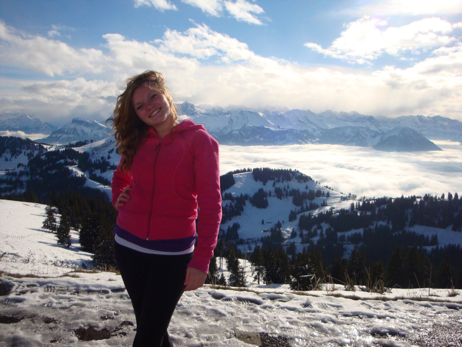 Then Monika took us to the Pilatus Mountains. It was INCREDIBLE !! We took the steepest train in the world to the top of the Pilatus Mountain, 2100 meters above sea level. On one side we were completely surrounded by snowy mountains that were breathtaking, and on the other side when we looked down we could see the beautiful city Lucerne..